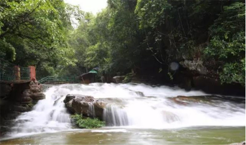 將軍潭瀑布常年傾瀉,沖擊崖下成潭,傳說(shuō)此潭的得名與東漢伏波將軍馬援及欽州民族英雄劉永福息息相關(guān),雨后周?chē)纬删薮蟮乃F和呼呼的冷風(fēng)。