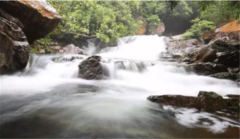 仙女池瀑布,一源兩流的巨大水流從高空落入谷底,在遠(yuǎn)處就能聽(tīng)到振聾發(fā)聵的聲音,像萬(wàn)馬奔騰從天上來(lái),氣勢(shì)恢弘。