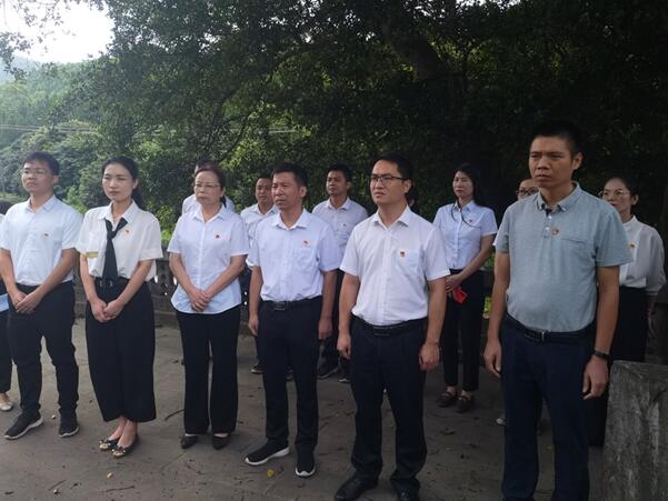 為教育引導(dǎo)廣大黨員筑牢黨員意識,珍惜黨員榮譽,加強黨性修養(yǎng),牢記黨的宗旨和入黨初心,同時推動黨史學習教育與愛國主義教育相結(jié)合,教育引導(dǎo)廣大黨員干部厚植愛黨、愛國、愛社會主義情感,不忘崢嶸歲月,賡續(xù)革命薪火。7月23日,第一黨支部委員會組織黨員干部開展黨史學習教育系列活動暨“政治生日話黨史,黨的光輝照我心”主題黨日活動,打卡太平鎮(zhèn)那馱村革命老區(qū)紅色教育基地和泗峽坳抗日烈士墓,接受愛黨愛國主義教育。