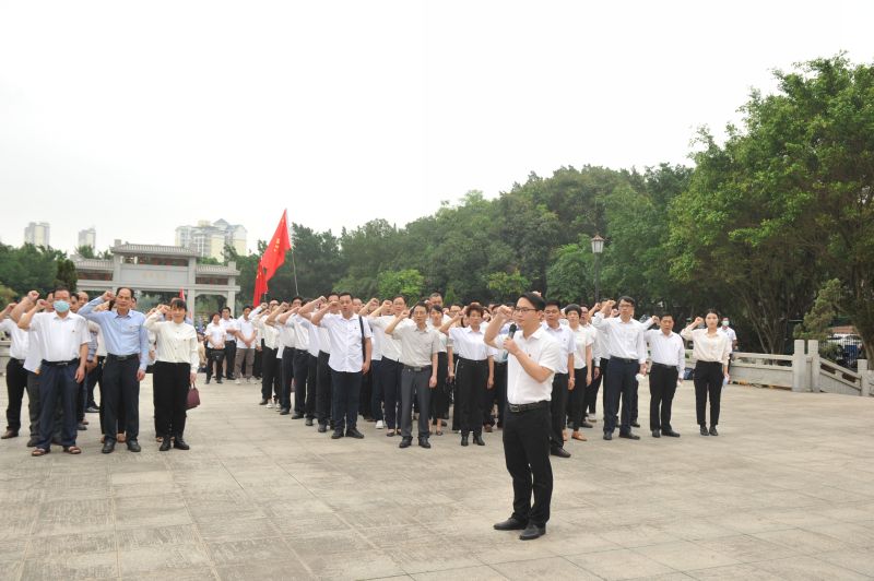 在革命烈士紀(jì)念碑前,全體黨員向革命烈士們敬獻(xiàn)花籃、肅立默哀、重溫入黨誓詞,合唱歌曲《團(tuán)結(jié)就是力量》,緬懷革命先烈,接受革命傳統(tǒng)教育。