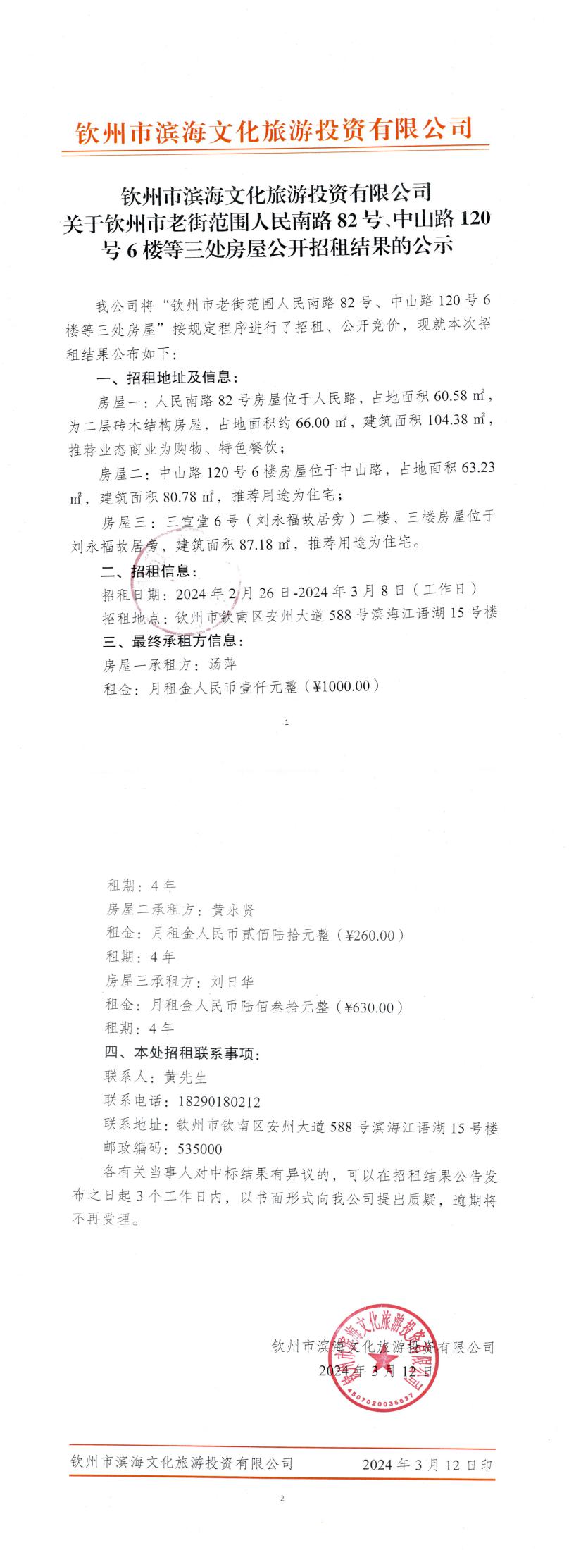 關(guān)于欽州市老街范圍人民南路82號、中山路120號6樓等三處房屋公開招租的公示