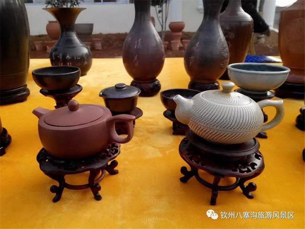 活動內(nèi)容:1.欣賞欽州坭興陶大師現(xiàn)場拉胚、雕刻制作等工藝表演; 2.游客可現(xiàn)場學(xué)制作坭興陶,或選自己喜歡的圖案及內(nèi)容發(fā)給大師現(xiàn)場雕刻制作,燒制后郵寄購買。