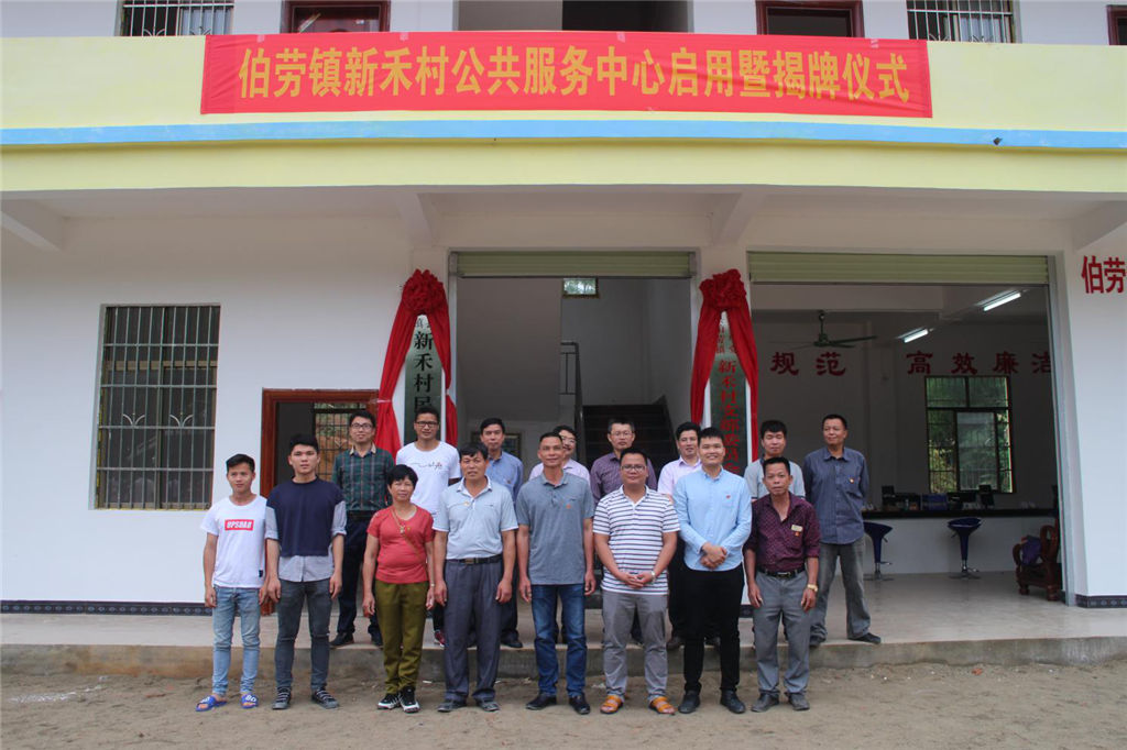 2018年4月28日上午,集團公司扶貧幫扶聯(lián)系村——靈山縣伯勞鎮(zhèn)新禾村在新公共服務(wù)中心舉行揭牌儀式。我集團公司和伯勞鎮(zhèn)人民政府、市檔案局、市林科所主要領(lǐng)導及駐村第一書記、包村工作組、村委全體成員齊聚新公共服務(wù)中心大樓前,共同見證新禾村新公共服務(wù)中心大樓揭牌儀式。
