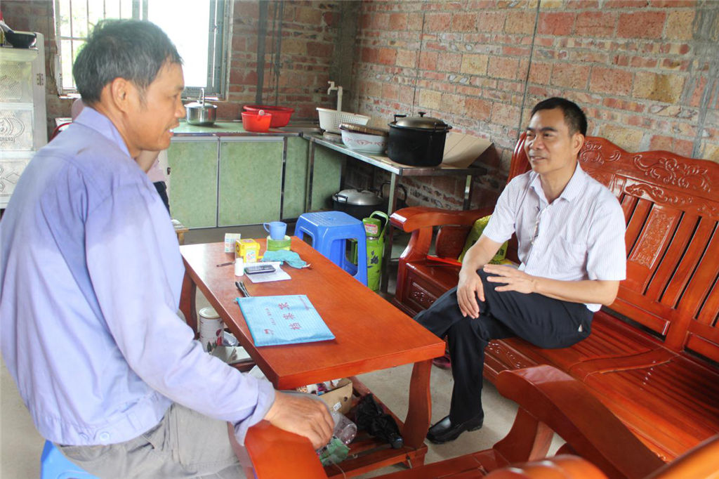 圖為集團公司領(lǐng)導(dǎo)與貧困戶親切交流