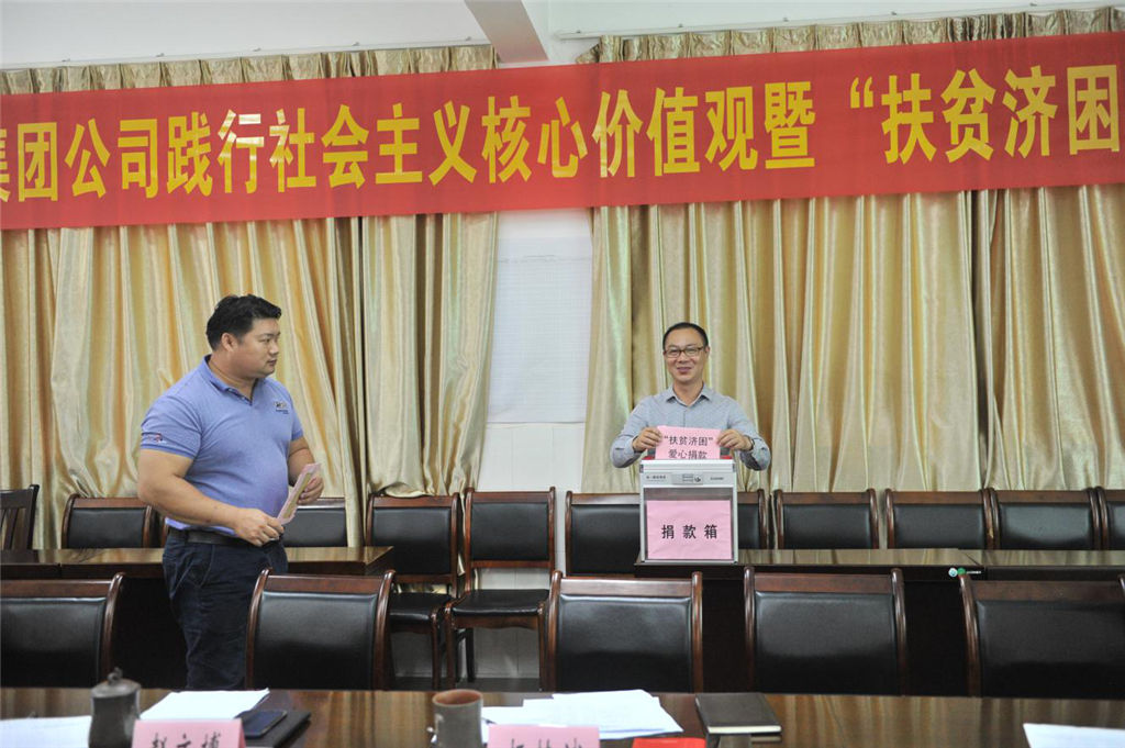 會后,立即開展了“扶貧濟困,扶弱助貧”捐贈活動,集團公司發(fā)動黨員、干部、職工自愿參與扶貧捐贈活動,呼吁全體職工參與到“全國扶貧日”這項意義深遠的活動中來?;顒又?,集團公司主要領(lǐng)導帶頭捐款,干部職工都積極響應(yīng),當天籌集到的愛心捐款共計¥8040.00元(人民幣捌仟零肆拾元整),所籌集的捐款將用于公司定點幫扶貧困村、貧困戶的生產(chǎn)生活條件改善、產(chǎn)業(yè)發(fā)展或發(fā)展村集體經(jīng)濟。