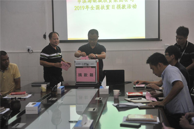 (圖為集團(tuán)公司開展扶貧捐款儀式,倡議大家共同關(guān)心和支持扶貧事業(yè),慷慨解囊,捐獻(xiàn)愛心)