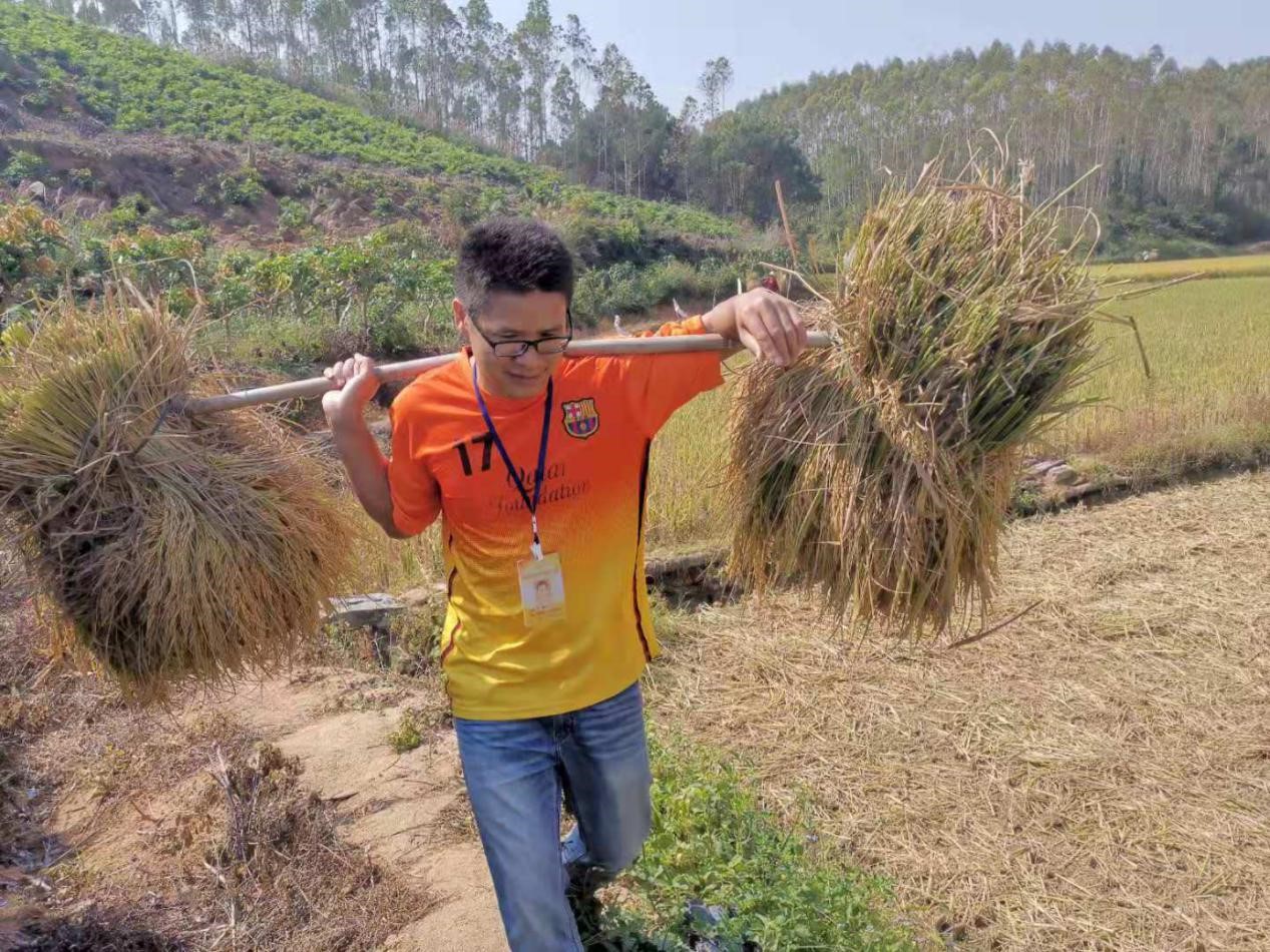 (圖為集團公司駐村工作隊員謝新平同志在田間幫助困難群眾將收割的稻谷挑回家).jpg)