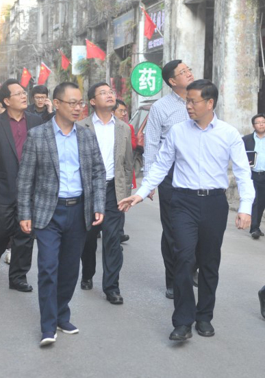 譚丕創(chuàng)市長(zhǎng)沿著中山路步行至占鰲巷,實(shí)地調(diào)研歷史文化街區(qū)保護(hù)和老城區(qū)改造提升工作,聽(tīng)取了集團(tuán)公司董事長(zhǎng)趙文博對(duì)中山路、占鰲巷、蘇廷有故居的提升改造匯報(bào)工作。