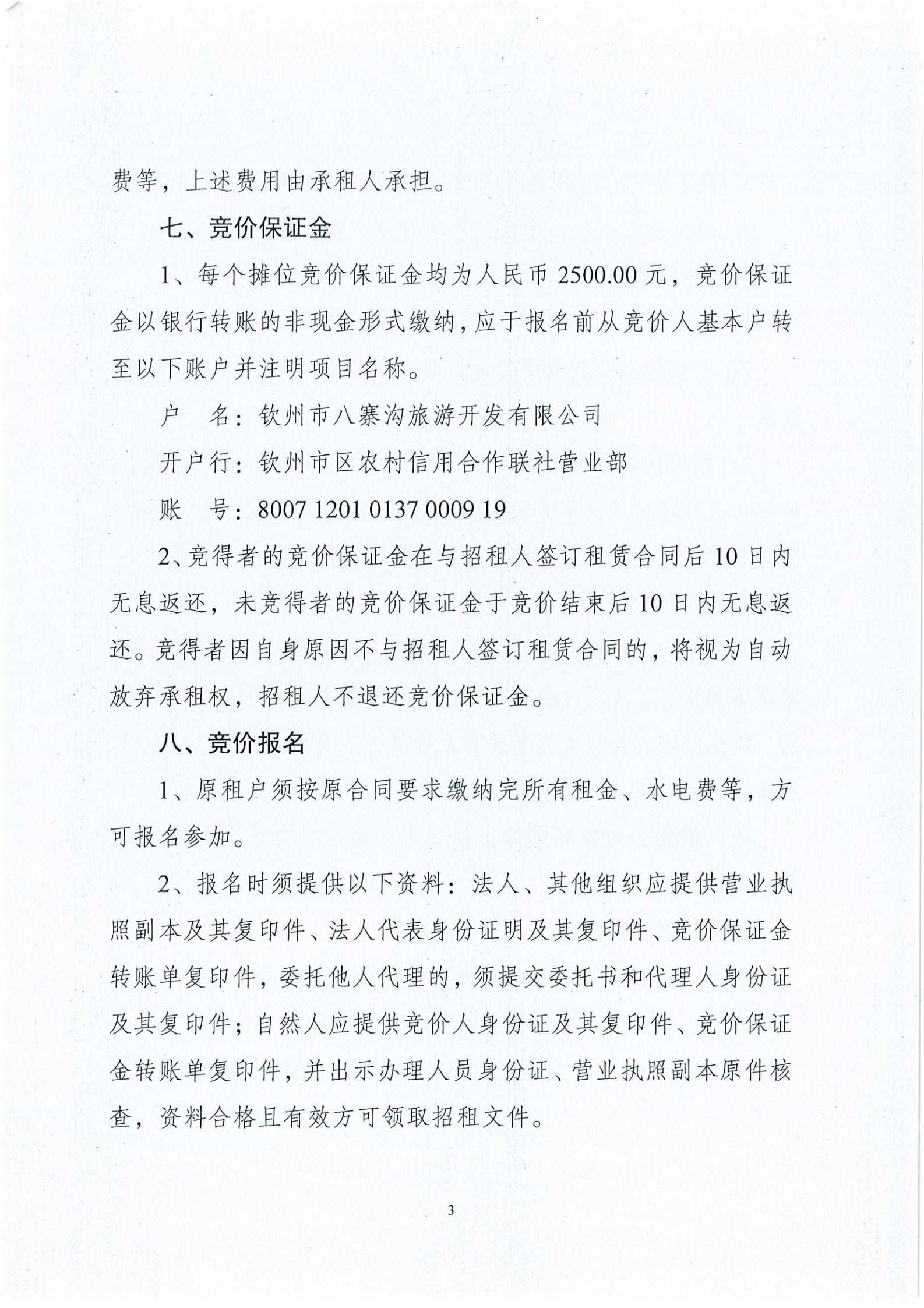 關(guān)于八寨溝攤位招租項目招租公告