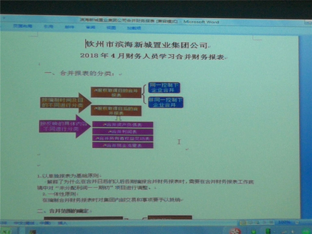 為了提高財務人員財務報表編報質量和工作效率,2018年4月15日上午,計劃財務部李東波經理主持召開學習會,學習編制合并報表的相關業(yè)務知識,集團及各子公司全體財務人員參會學習。會上洪家泰副經理講解了合并會計報表及附注的編制方法及要求,規(guī)范和統(tǒng)一報表和附注的格式,并針對同一控制下企業(yè)合并及非同一控制下企業(yè)合并的少數股東權益、歸屬于母公司所有者權益進行了詳細講解。
