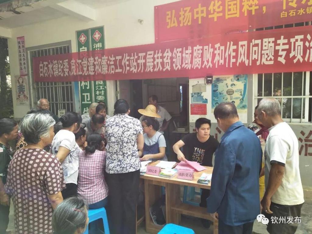 ▲黨建和廉潔工作站工作人員在良江村開展扶貧領(lǐng)域腐敗和作風(fēng)問題專項(xiàng)治理公開大接訪活動(dòng)