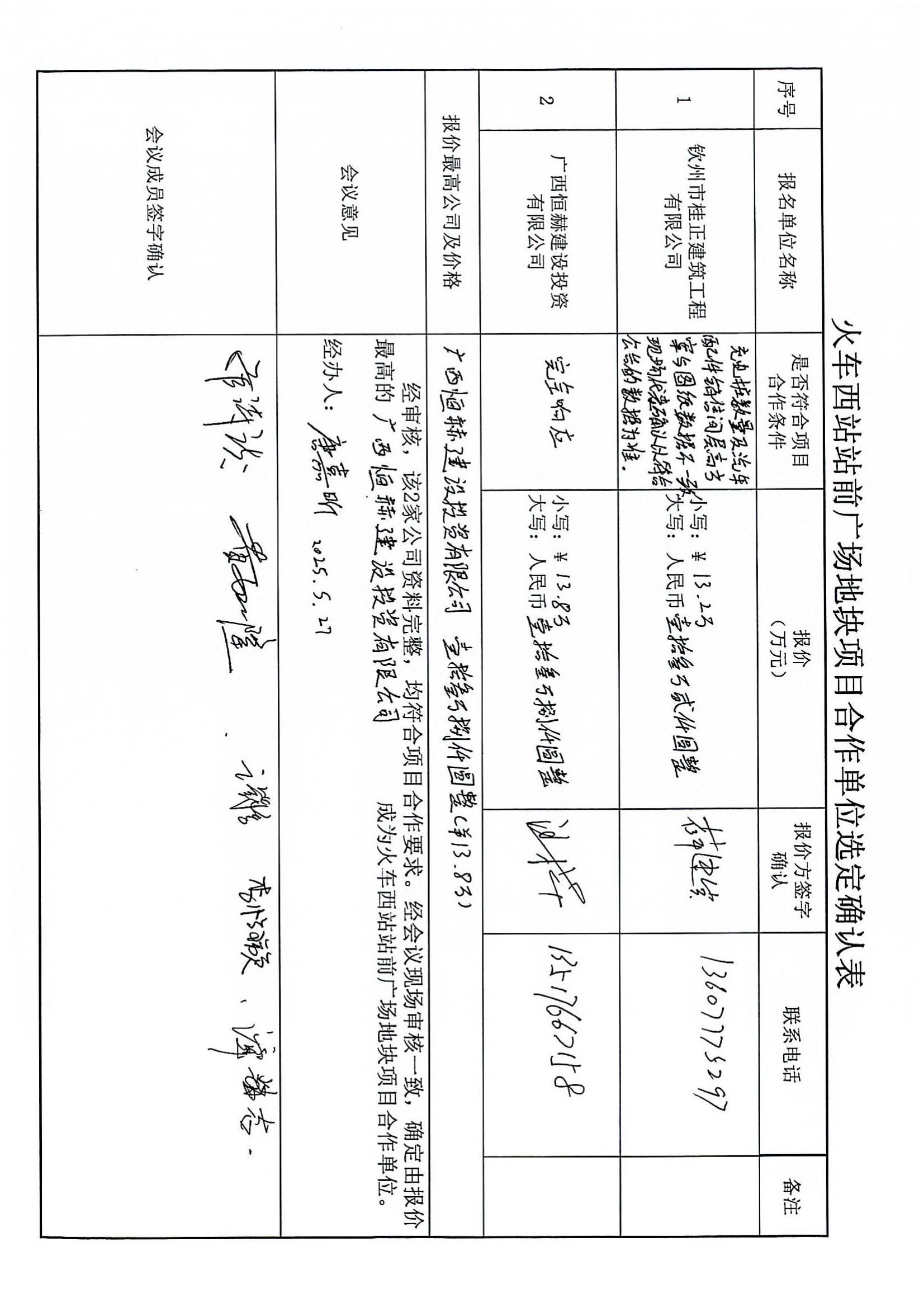 火車西站站前廣場地塊招租項(xiàng)目成交結(jié)果公告