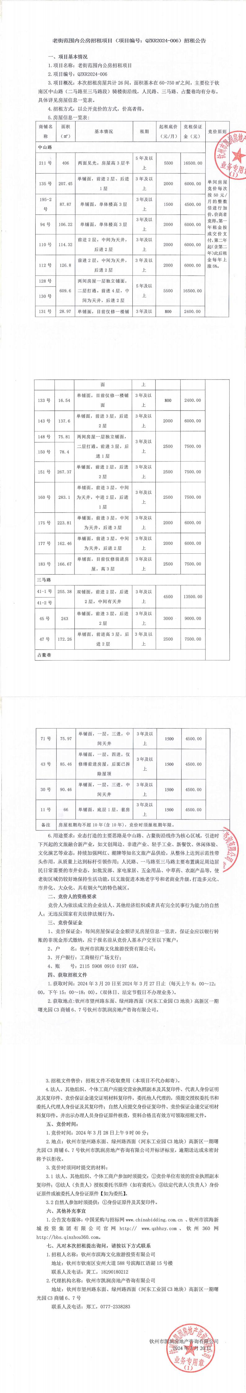 老街項(xiàng)目范圍內(nèi)公房招租項(xiàng)目(項(xiàng)目編號:QZWJY2024-002)招租公告