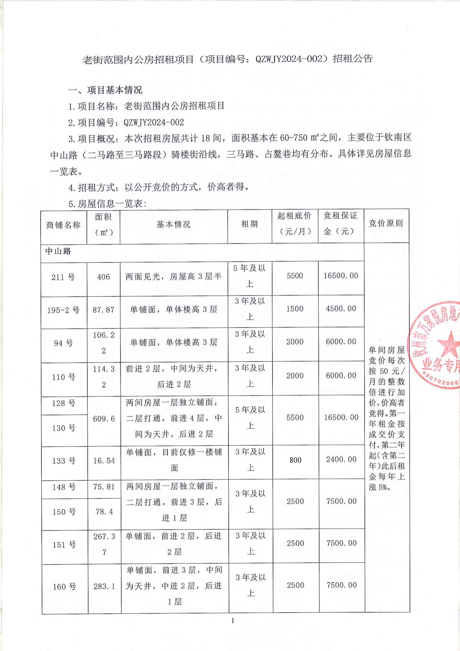 老街范圍內(nèi)公房招租項(xiàng)目(項(xiàng)目編號:QZKR2024-006)招租公告