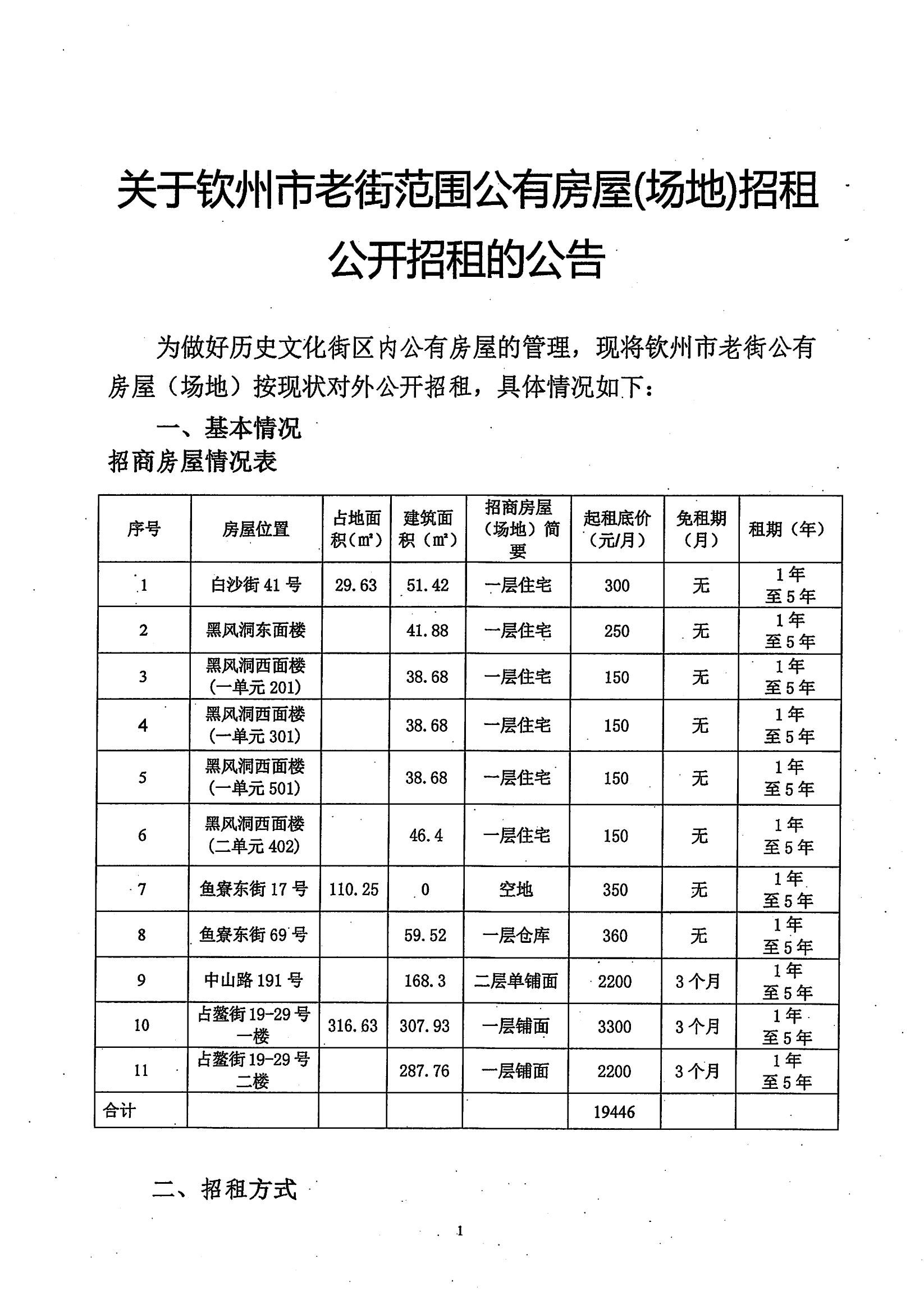 關于欽州市老街范圍公有房屋(場地)招租公開招租的公告